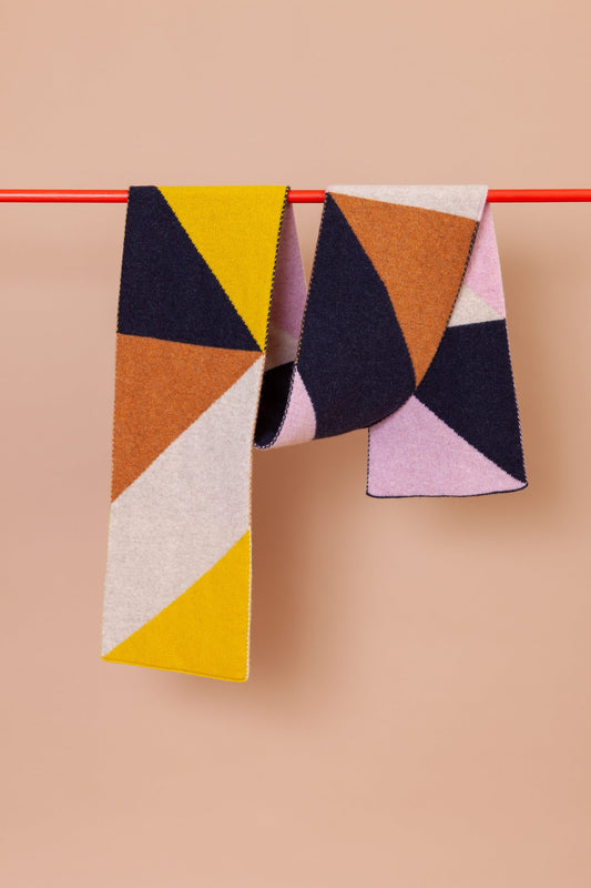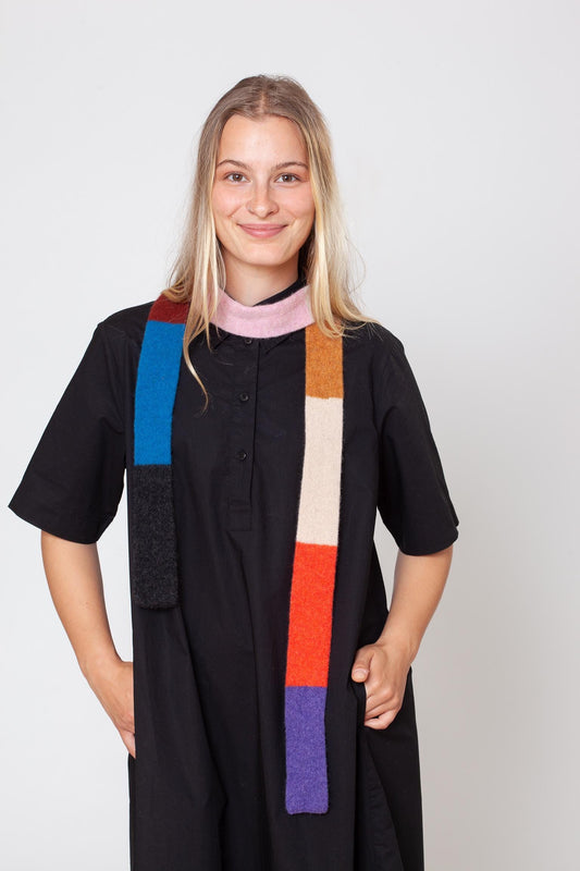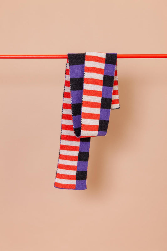 gestreifter langer Minischal mit 9 Farben aus Lammwolle