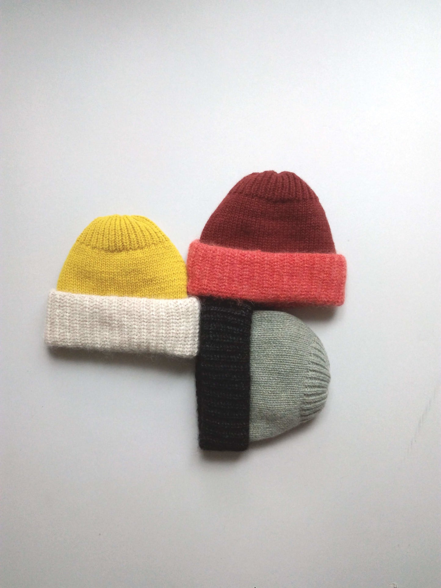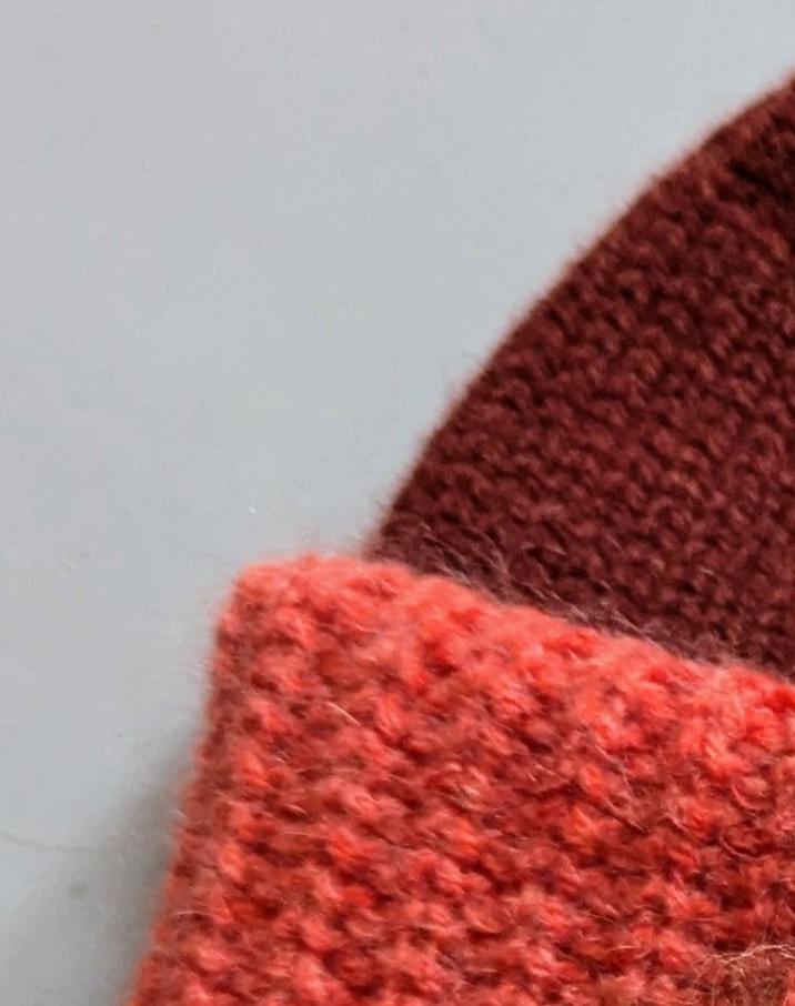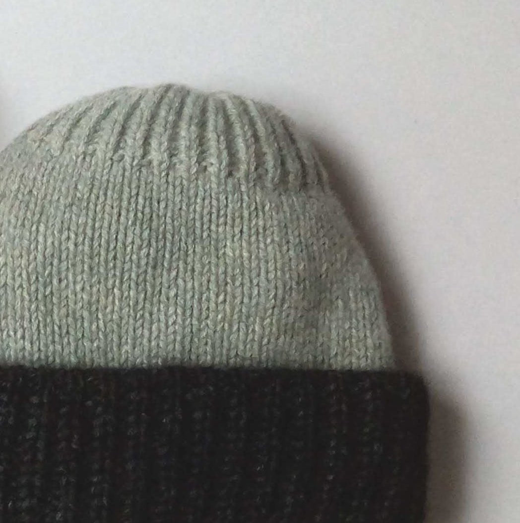 The knitted bicolor beanie is made by order. It's possible to wear it in different ways by wrapping.