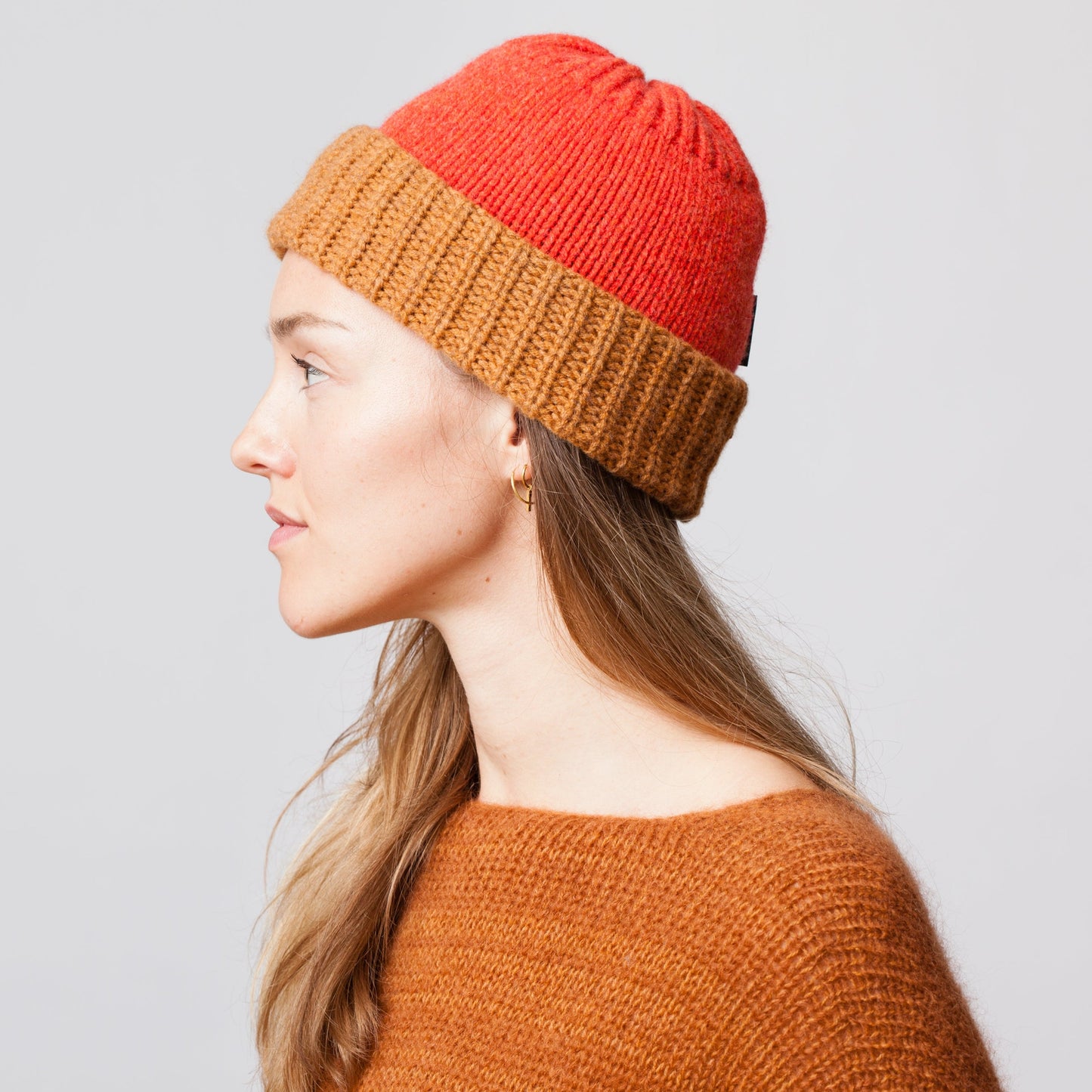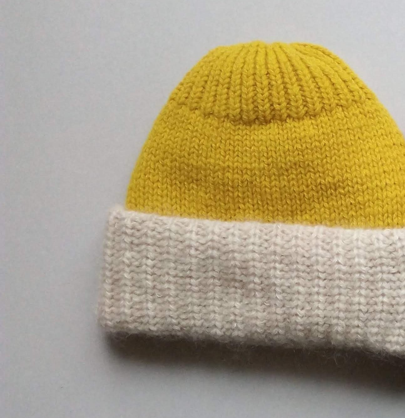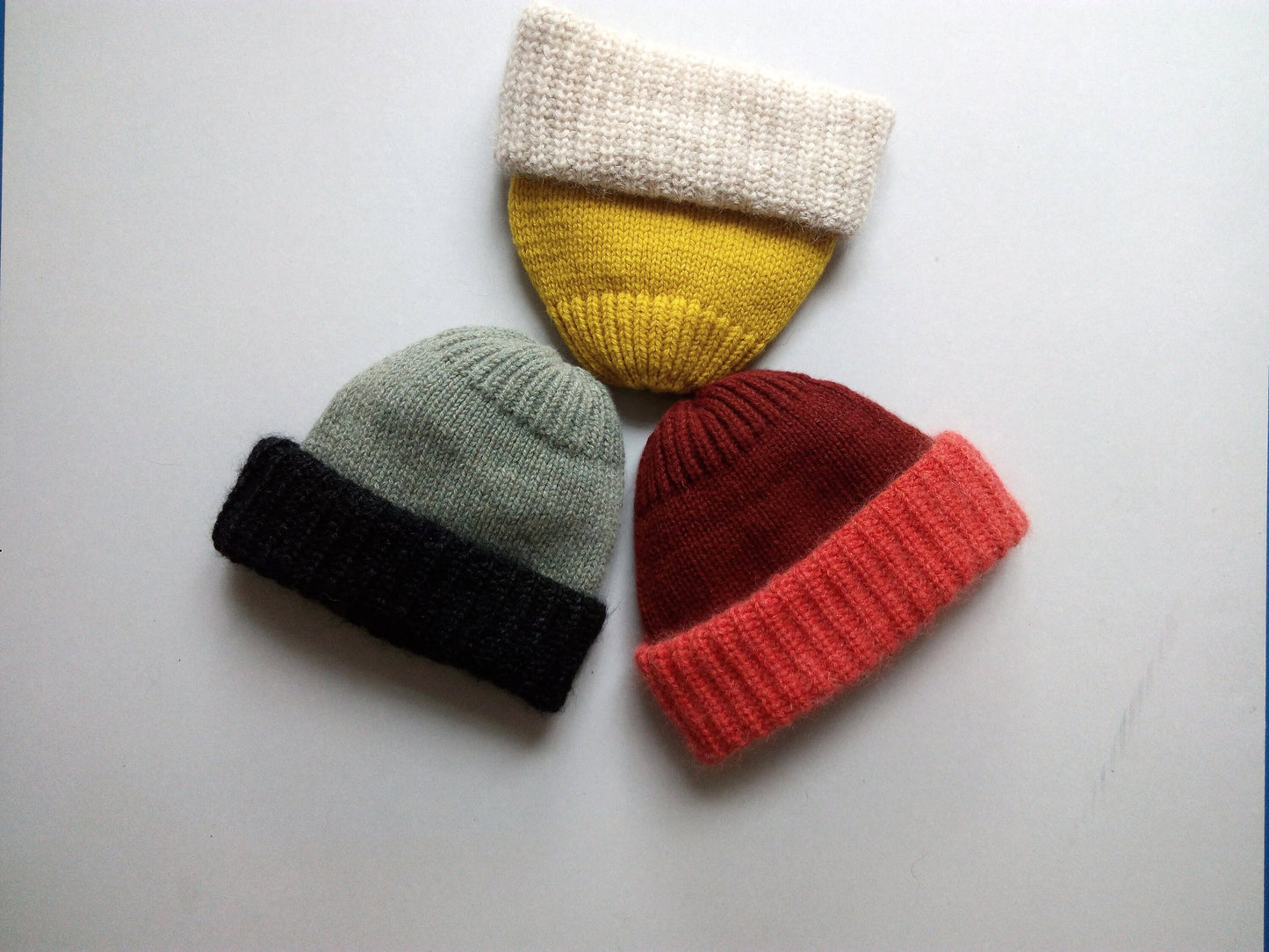 The knitted bicolor beanie is made by order. It's possible to wear it in different ways by wrapping.